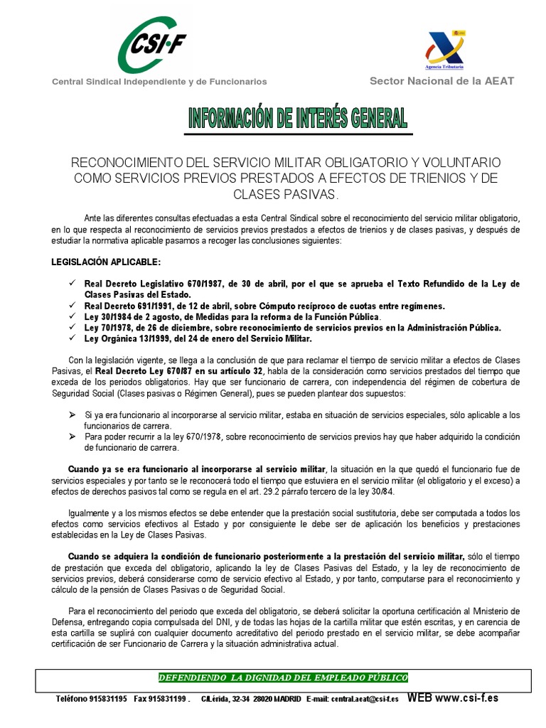 El servicio militar a efectos del computo de trienios al usar este sitio acepta el uso de cookies propias y de terceros para análisis contenido personalizado y publicidad. B si realizó el servicio militar obligatorio antes de ingresar en la función pública no se considera servicio previo a la administración pública el tiempo del servicio militar obligatorio. Además del interés económico el reconocimiento del servicio militar a efectos del cómputo recíproco de cotizaciones entre los distintos regímenes de.